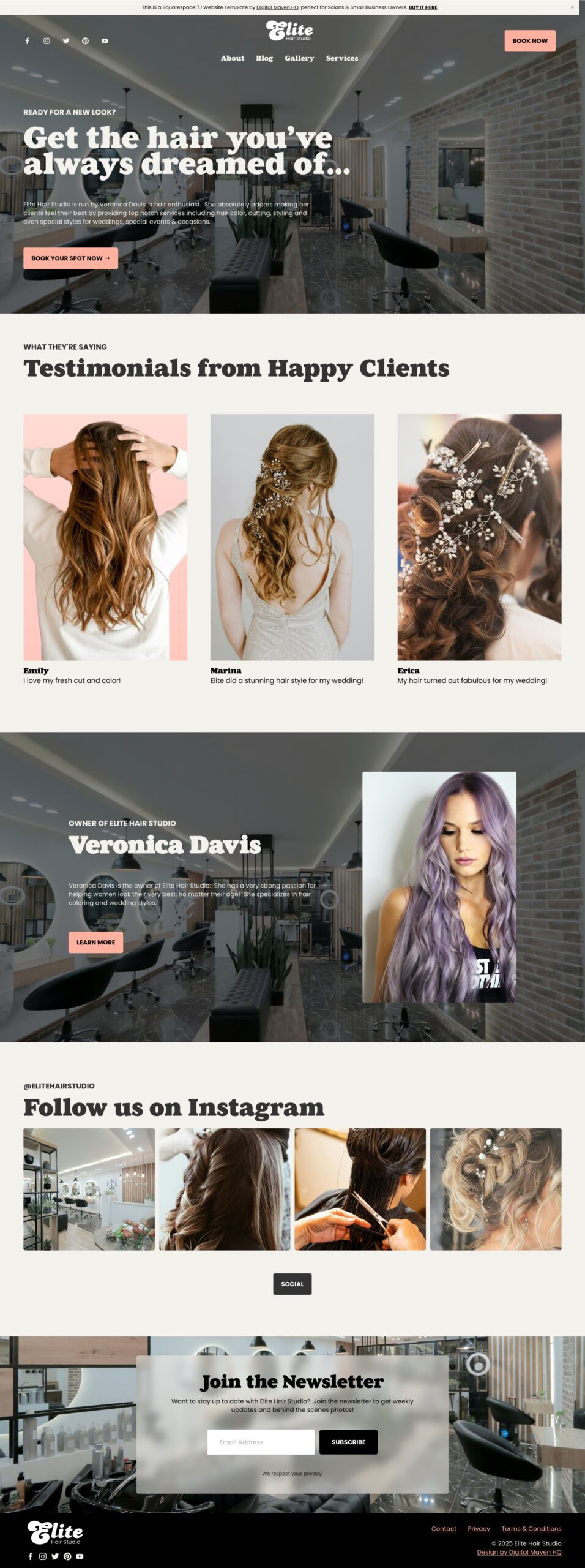 A custom website design, choose from WordPress with Divi or Squarespace.